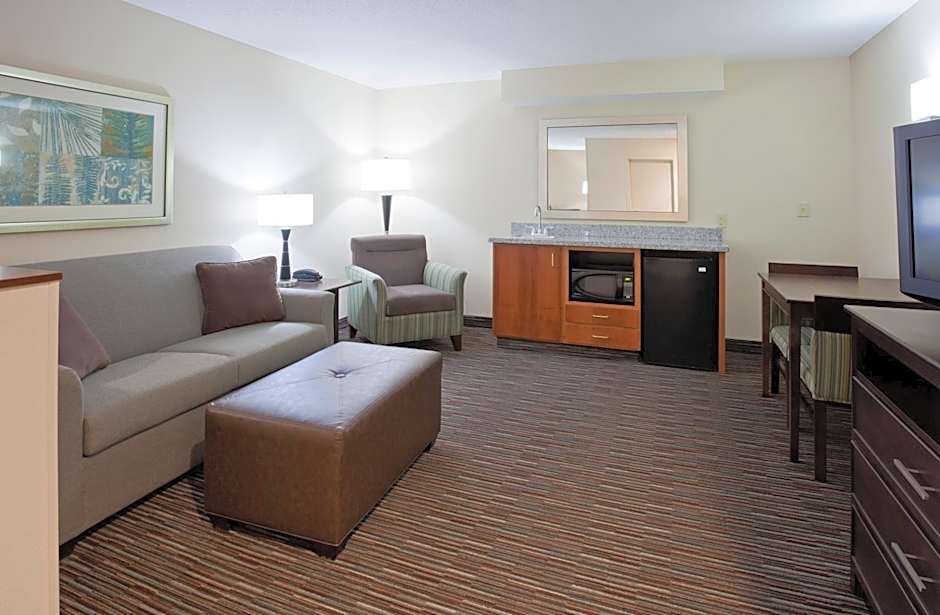A 32-inch flat-screen cable TV is included in the separate living area of this suite, along with a microwave, fridge, and coffeemaker.